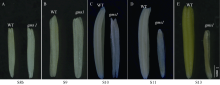 玉米雄性不育系的创制与应用是降低玉米杂交种制种成本、提高种子纯度的有效途径。本研究鉴定到2个玉米雄性核不育突变体gms1和yems1166, 表型分析表明突变体花药角质层结构异常, 小孢子在单核后期开始降解, 成熟期突变体无花粉粒形成。遗传分析表明2个突变体不育性状受细胞核隐性单基因控制。通过图位克隆的策略将GMS1和YEMS1166基因分别定位于第5染色体23.52~26.09 Mb和24.86~30.95 Mb区间, 该区间包含已报道的脂类转运蛋白基因ZmMS13, 编码ABCG转运蛋白ZmABCG2a。基因测序结果显示gms1在ZmMS13基因第5外显子上有1个碱基的替换(TCA>TGA), 导致其翻译提前终止; 突变体yems1166在ZmMS13基因的第1外显子上有8个碱基的缺失, 导致其翻译提前终止。等位性测验进一步证明gms1和yems1166为ZmMS13的新等位突变体。本研究鉴定到2个新的ZmMS13基因等位突变体, 为玉米雄性不育化杂交制种提供了新的种质资源。