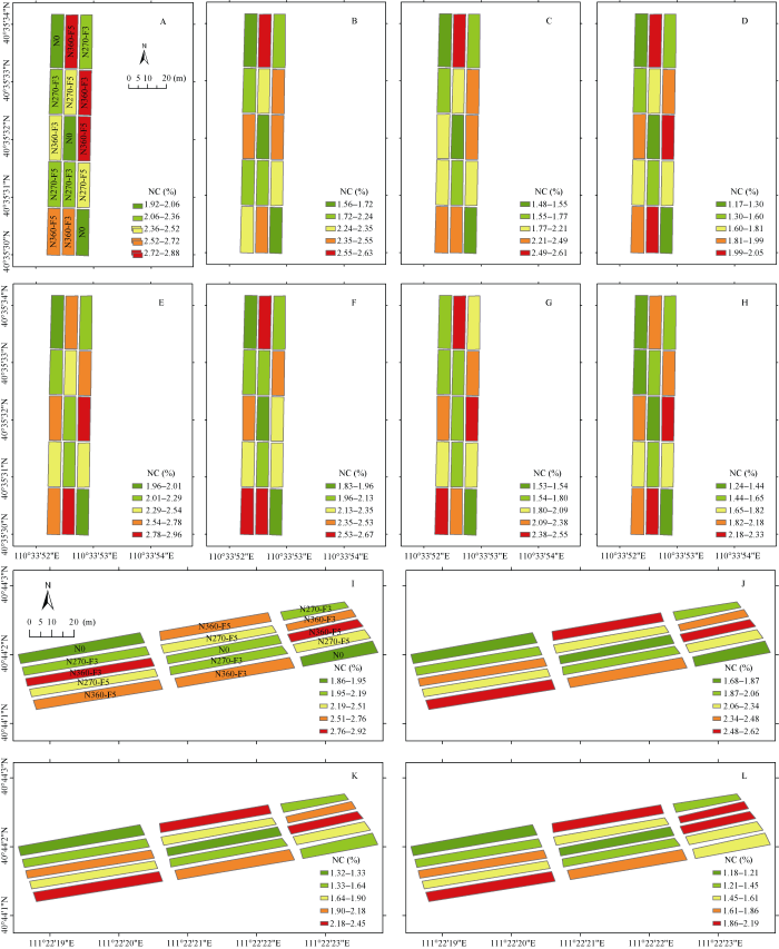 因此, 本研究在不同氮肥运筹下对玉米冠层叶片进行分层并观测玉米冠层氮浓度, 将冠层氮浓度空间分异数据与无人机光谱相结合, 主要目的有3点: 一是揭示玉米冠层氮浓度空间分异规律; 二是确定估算玉米冠层氮浓度的有效叶层; 三是构建考虑氮浓度空间分异的冠层氮浓度估算模型并评估模型精度。本研究有望为玉米氮素营养实时诊断提供参考。