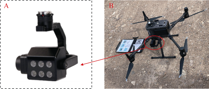 无人机(A)搭载多光谱传感器(B)影像采集平台