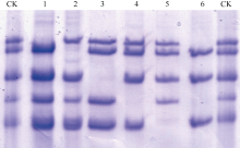 突变体库中HMW-GS缺失突变单株共299个, 突变频率为7.91%。其中HMW-GS分子量改变的材料(包括3份同时含Ax缺失的突变体)130份, 突变频率为3.44%。在172个(突变频率4.55%) HMW-GS缺失突变体中, Ax1亚基缺失频率最高, 共124份(包括3份Ax缺失+分子量突变及3份Ax+By双缺失), 突变频率为3.28%; 其他HMW-GS缺失突变型都低于15份, 突变频率低于0.4%, 尤以双缺失突变型最少(表2)。